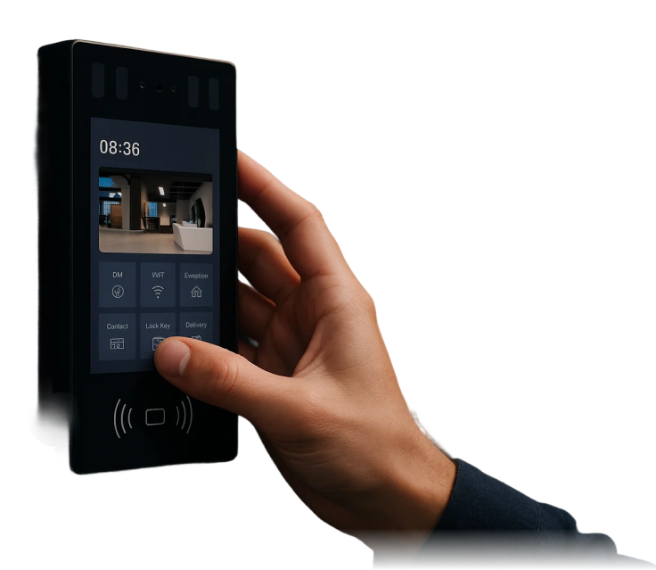 אינטרקום לבניין משותף של נטוויל מאפשר מענה לקריאה באמצעות מסך עם תצוגה באיכות גבוהה, נוחות מירבית ומוסיף שיפור ברמת האבטחה לדיירי הבית. לוח הבקרה החכם המותקן בכל יחידה מציע מגוון תכונות מתקדמות לשימוש יום-יומי.