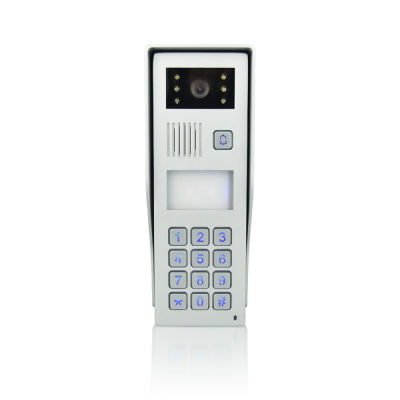פנל אלומיניום משולב מצלמה לחצן קריאה קודן וקורא קרבה (תדר 125) וכיתוב שם מואר מיועד להתקנה על הטיח